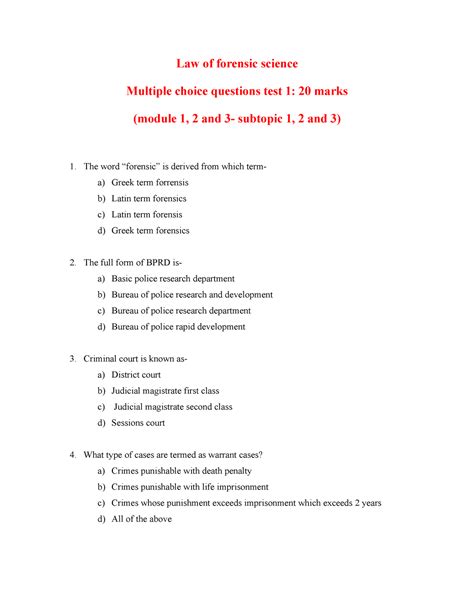 Read Online FORENSIC SCIENCE MULTIPLE CHOICE QUESTIONS ANSWERS Epub